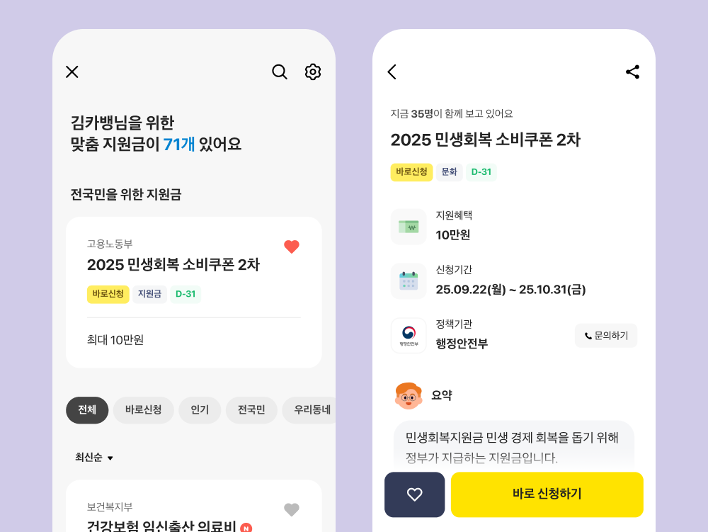 나에게 딱 맞는 맞춤형 지원금 정보 확인