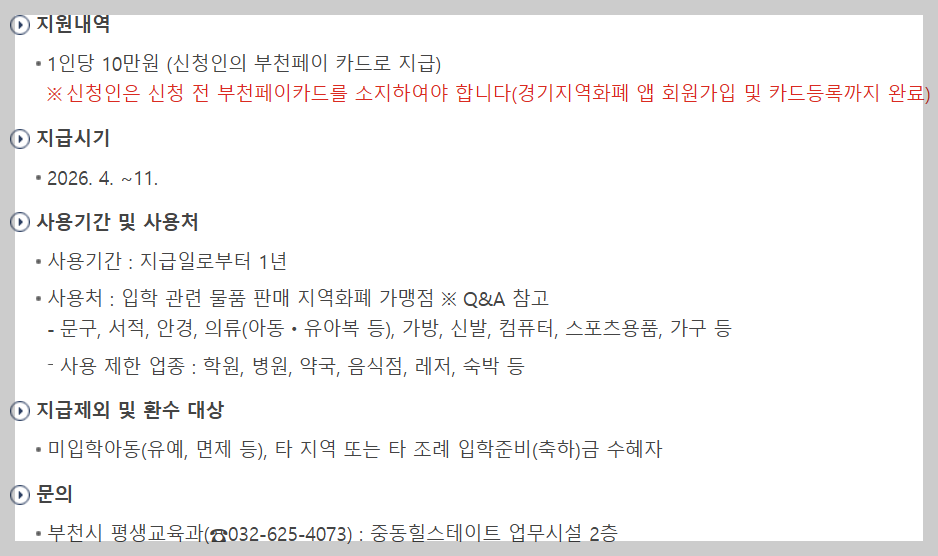 - 지급 방식: 부천페이 카드로 지급 (지역화폐 가맹점에서 사용 가능)