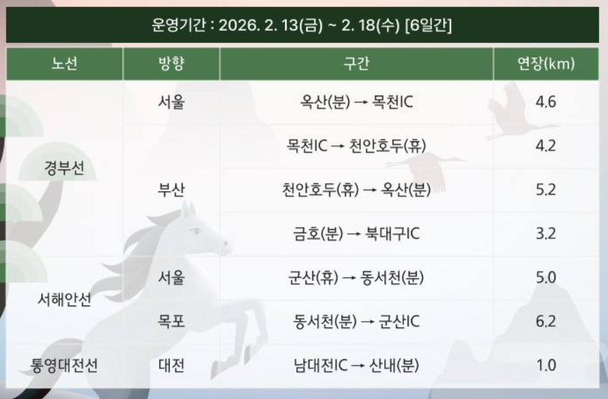 설 명절은 한 해의 시작을 가족과 함께 맞이하는 우리 사회의 대표적인 전통 명절로, 전국적으로 대규모 인구 이동이 동시에 이루어지는 시기입니다. 매년 설 연휴 기간에는 귀성·귀경 차량이 급증하면서 주요 고속도로 구간의 교통량이 평소 대비 크게 증가하고, 장시간 운전과 교통 혼잡으로 인한 국민 불편이 반복되어 왔습니다.