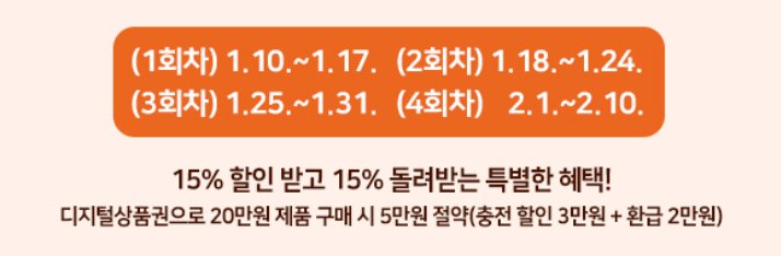 - 디지털 온누리상품권 결제액 환급: 최대 15% 환급