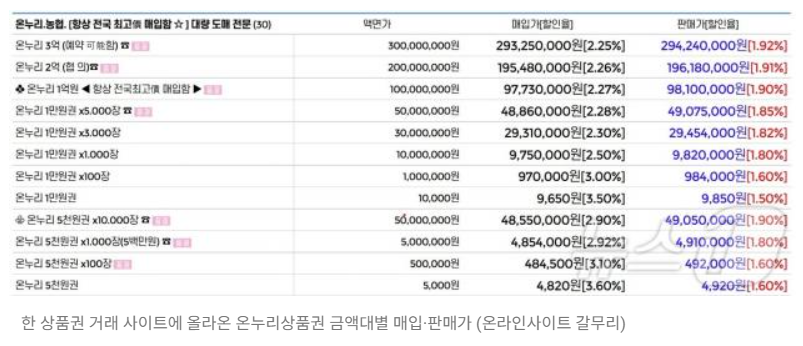 온누리상품권은 주로 재래시장에서 사용하기 때문에 악용 사례가 없을 것으로 기대했지만 최근 대구 팔달신시장 내 채소가게에서 위장 가맹점 3곳을 등록한 뒤 상품권을 불법 유통하는 일이 발생했습니다. 실제로 존재하는 가게는 시장 내 마늘가게 한곳뿐 나머지 두곳은 페이퍼 컴퍼니였습니다. 이들은 월 평균 192억원의 온누리상품권을 현금으로 환전하며 부당하게 보조금을 받아 챙긴 것으로 알려졌습니다.