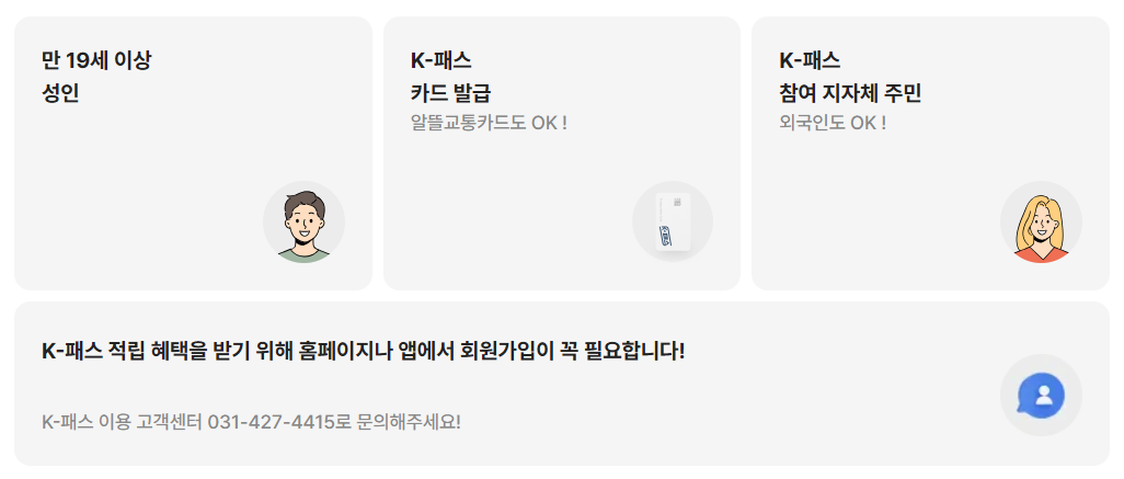 K-패스 사업에 참여하는 지자체에 주민등록된 만 19세 이상의 주민들이 해당됩니다.