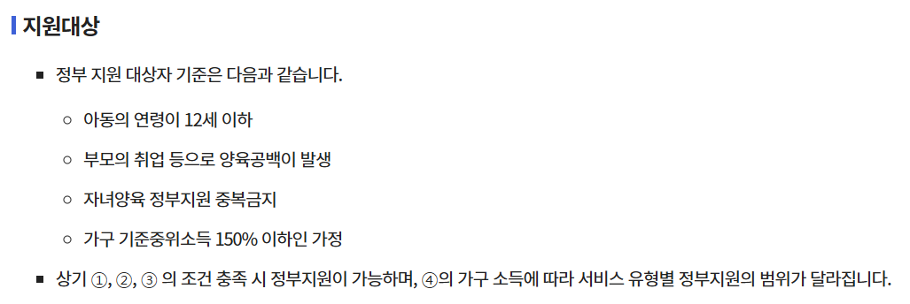 아이돌봄서비스 지원자격