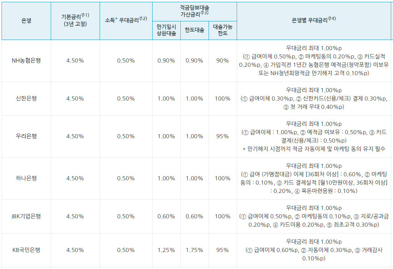 청년도약계좌는 여러 은행에서 제공하며, 각 은행별로 금리와 우대 조건이 다를 수 있습니다. 아래는 주요 은행들의 금리 및 우대 조건에 대한 정보입니다.
