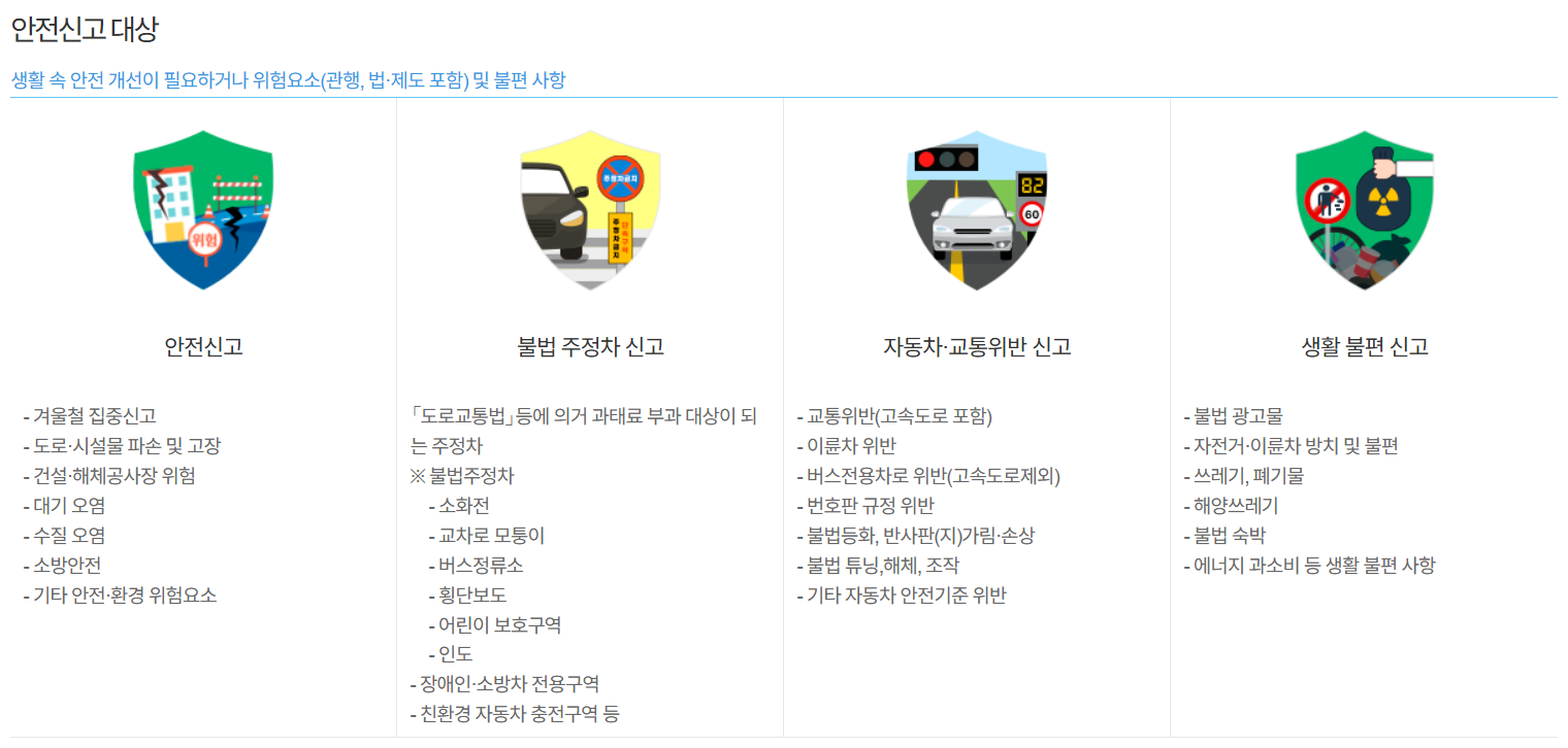 이러한 과정을 통해 국민들은 일상에서 발견한 안전 위험 요소를 신속하게 신고하고, 관련 기관의 조치를 받을 수 있습니다.