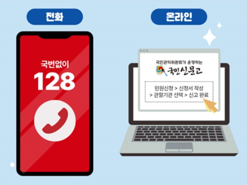 온라인: 국민신문고 웹사이트를 통해 신고 신고 시 6하 원칙(누가, 언제, 어디서, 무엇을, 어떻게, 왜)에 따라 상세히 작성 증빙 자료(사진, 동영상 등)를 첨부하면 더욱 효과적입니다.