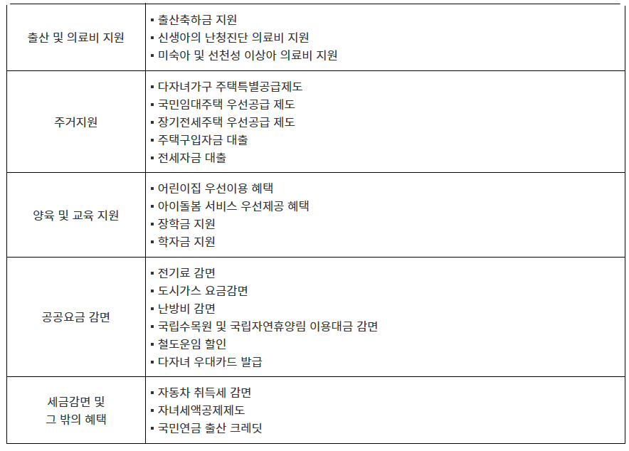 그 밖에도 다양한 다자녀 지원 제도들이 시행되고 있습니다. 다음의 정보는 2025년 1월 15일 기준으로 작성된 것입니다.