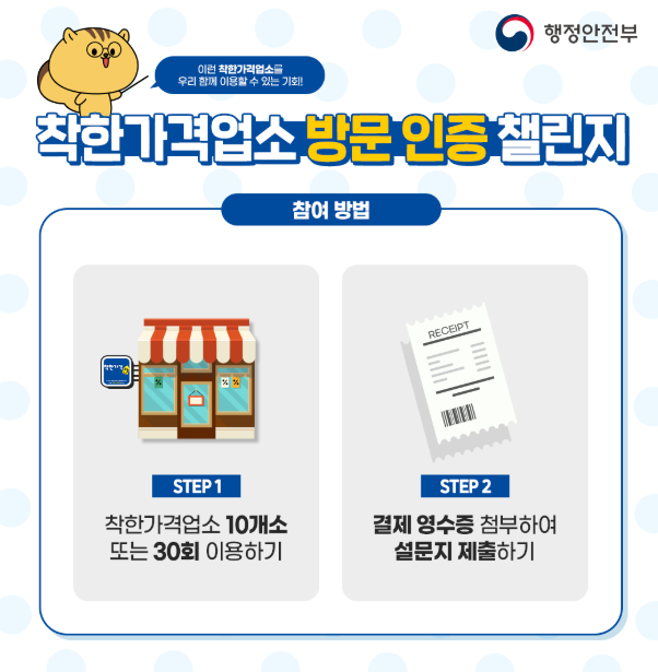 각 지자체에서는 착한가격업소를 활성화하기 위해 지역별 프로모션을 진행하고 있습니다. 예를 들어, 일부 지자체에서는 착한가격업소 이용 영수증을 인증하면 소정의 상품을 제공하거나, 포인트 적립 혜택을 부여하는 이벤트를 운영하고 있습니다.