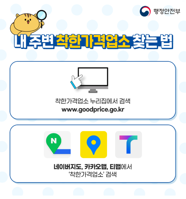 주변의 착한가격업소를 찾는 방법은 다양합니다. 가장 간단한 방법은 네이버지도, 카카오맵, 티맵 등의 지도 애플리케이션에서 '착한가격업소'를 검색하는 것입니다. 이를 통해 현재 위치를 기준으로 가까운 착한가격업소를 손쉽게 확인할 수 있습니다.